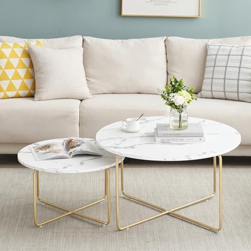 ZZINOKE Table Basse Ronde 80x80cm Marbre Doré