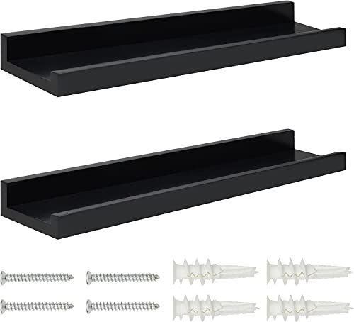 Belle étagère murale noire en bois (Lot de 2) - Étagère flot...