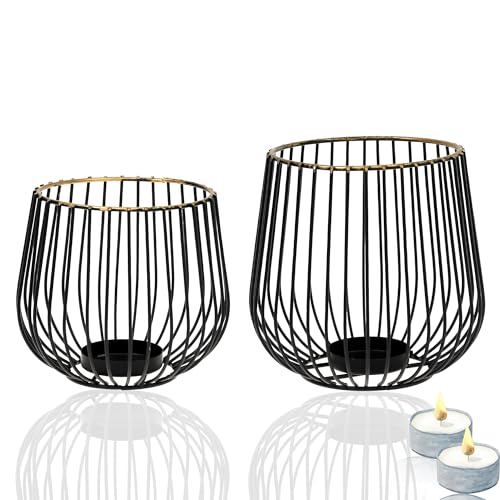 Flanacom Lot de 2 photophores en métal noir - Décoration en...