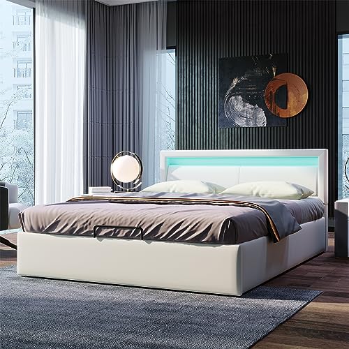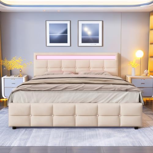 Brasyao Matelas 180 x 200 cm, Dossier LED avec 4 tiroirs et...