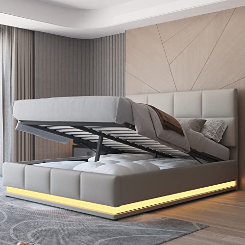 Merax Lit Capitonné 140x200 cm, fonctionnel hydraulique, dou...