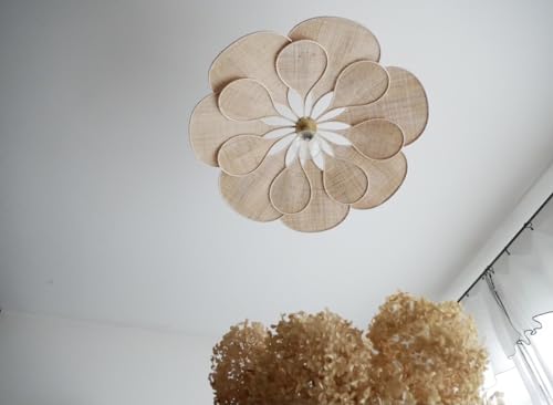 Floral Aérienne Lin et Rotin Suspension 14 pétales