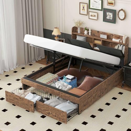 KOMHTOM Lit Coffre avec Tête de Lit de Rangement, Lit en Boi...
