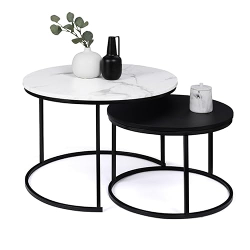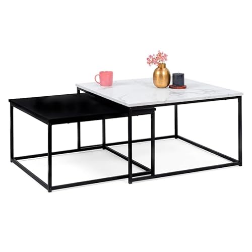 Lot de 2 tables basses modernes imitation marbre s''adaptant...