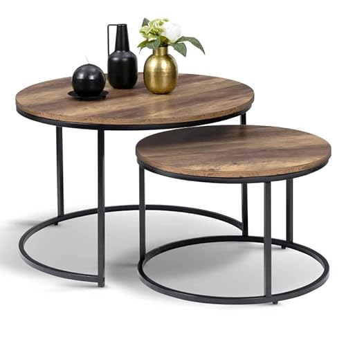 Notre lot de 2 tables basses gigognes bois foncé et métal no...