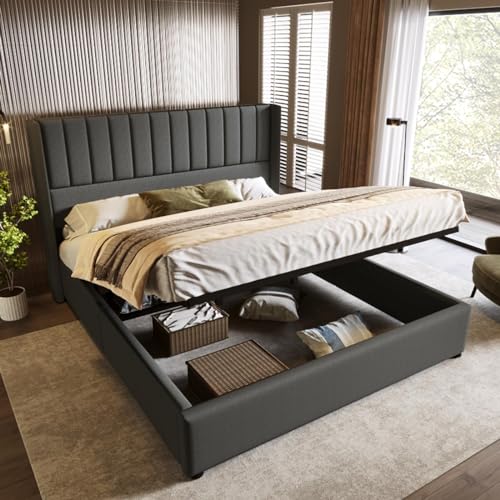 Lit hydraulique réglable tête Lattes, sommier Lin, Cadre rel...