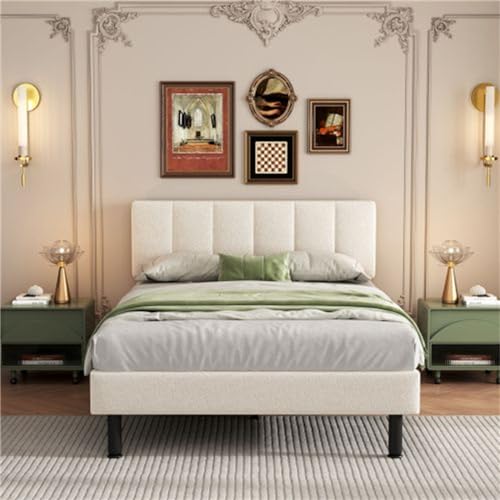 Ntxplora Cadre Lit Rembourré Fer, Sommier Lattes, Design Min...