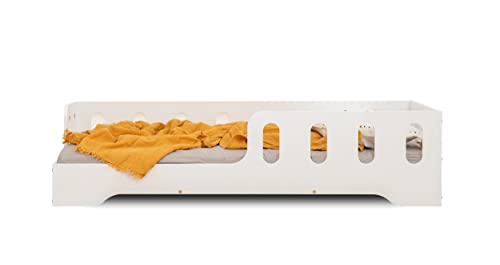 ML Design Lit Simple 90x200 cm Lattes Bois Pin Blanc