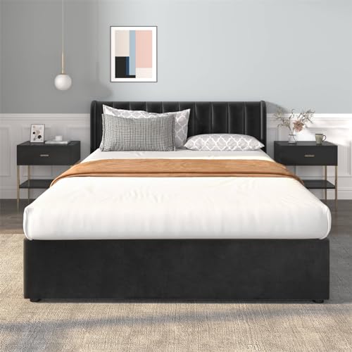 KOMHTOM Lit Rembourré avec Rangement sous Lit, Lit Double av...