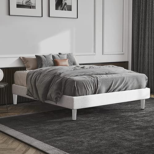 KOMHTOM Lit Double Rembourré avec Sommier à Lattes en Bois,...