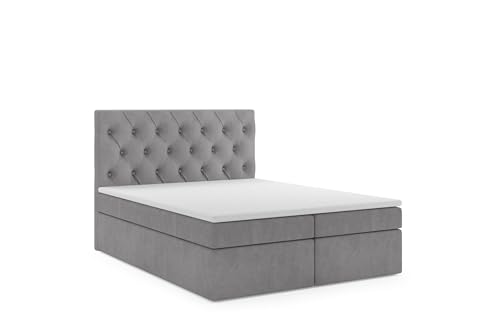 Lit double capitonné gris avec sommier à lattes, tête rembou...