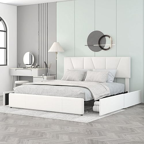 Rembourré Double Rangement Lit Rangement Blanc 160x200cm