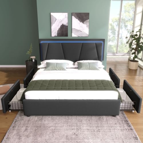 Cadre de lit flottant avec lumière RVB : La tête de lit et l...
