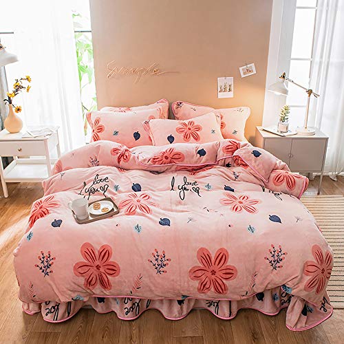 Menkala Couette Rose Blanc Carreaux Volants Ensemble Literie...