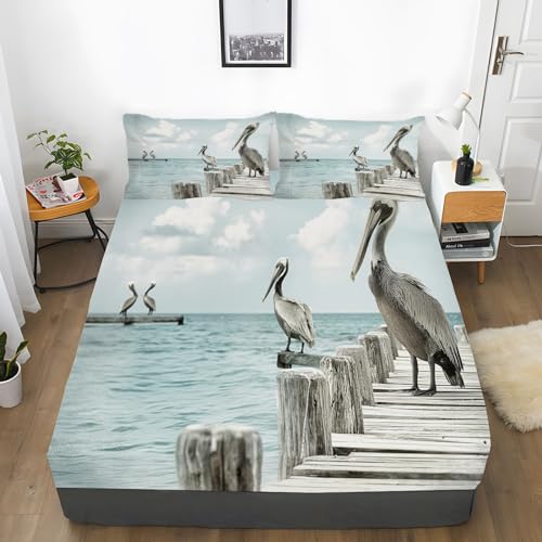 Drap Housse Microfibre 160x200 cm Oiseau sur Un Pont en Bois...