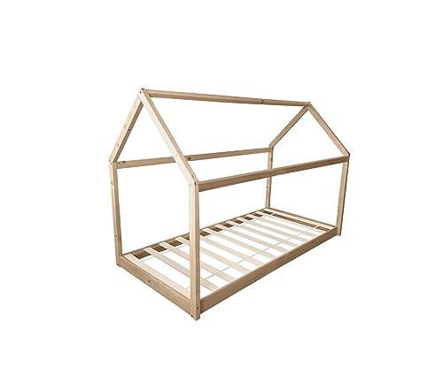 Skandi Hausbett Lit Cabane 60x120 cm Bois Naturel – Milo - L...