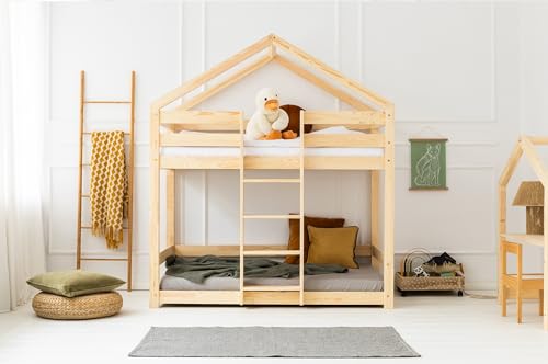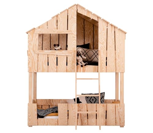 ADEnfant Lit superposé Cabane Meuble enfant Lit 70x140 Bois
