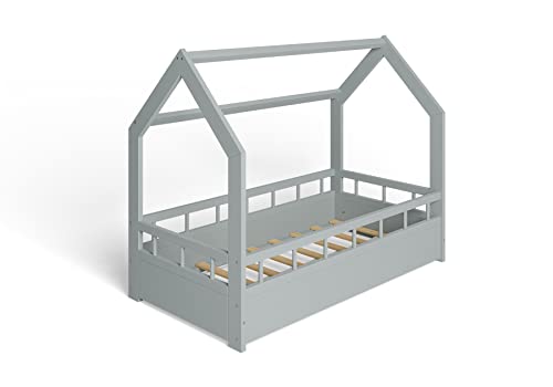 MS FACTORY Lit Enfant Bébé Maison 70x140 cm - Lit en Massif...