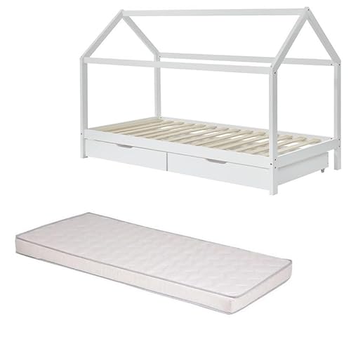 Laïba Kids Lit cabane Enfant 2 tiroirs Blanc 90x190 cm plus...
