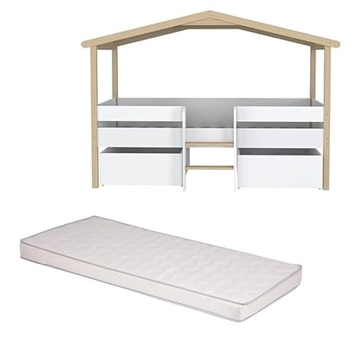 Laïba Kids Ensemble Lit Cabane Enfant Blanc 90x190 cm plus M...