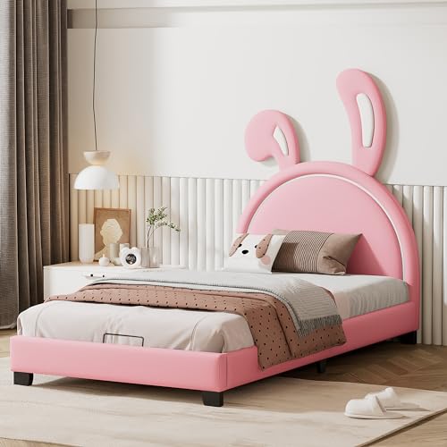 Lit capitonné 90x200 cm pour enfant, oreilles de lapin, pied...