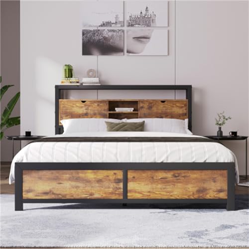 Lit Simple En Métal Avec Tête De Lit De Rangement Et Lattes...