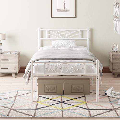?️【 Robuste et Stable】 Ce lit simple en métal de design co...