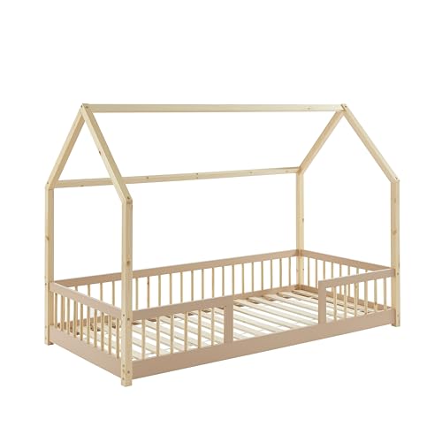Lit Cabane 90x190 cm Bois Naturel - Bell Nuo - Lit Cabane En...