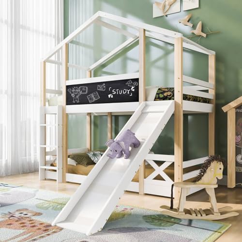 Homestyle4u 1542, lit loft pour Enfants avec Toboggan, échel...