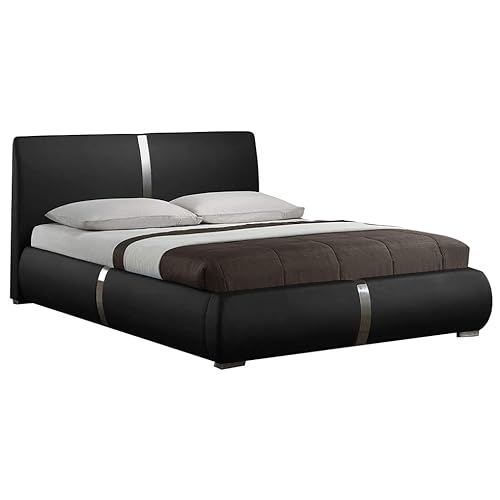 FetiNes 140x190 cm Double Cadre de Lit Noir avec Sommier