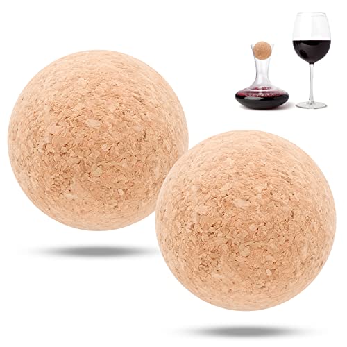 Inhibing 2 Wooden Carafe Lid, Liège Ball Shape for Wine Cara...
