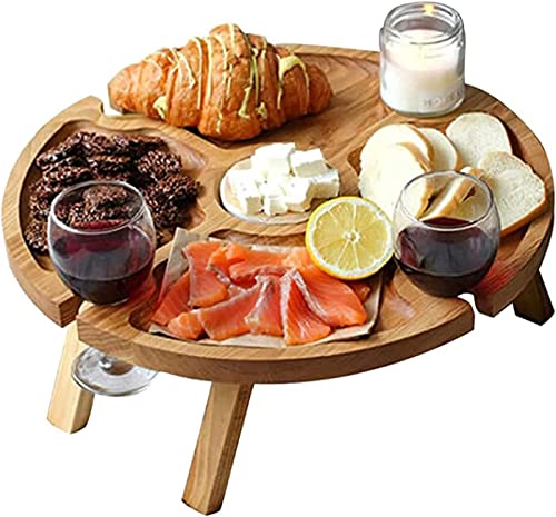 Plateau de lit rond bambou pliable 4x4 supports vin canapé m...