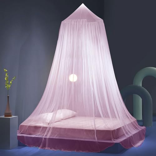 Funmo Moustiquaire lit, Grand baldaquin de lit Rose pour Fil...
