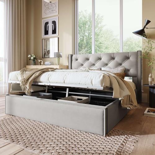 KOMHTOM Lit Double Rembourré avec Rangement sous Lit, Lit Pl...