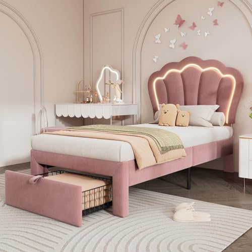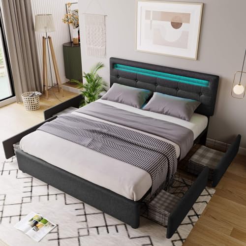 KOMHTOM Lit Rembourré avec éclairage LED et Tiroirs de Range...