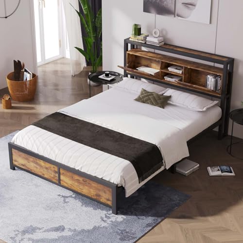 KOMHTOM Lit en Bois avec Tête de Lit à Rangement et Sommier...