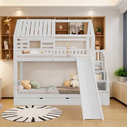 Azkoeesy Lit superposé, 90 x 200 cm, avec tiroirs et espace...