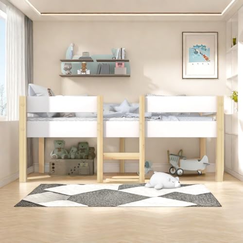 NQSLDM Lit superposé en bois 90 x 200 cm avec échelle et pro...