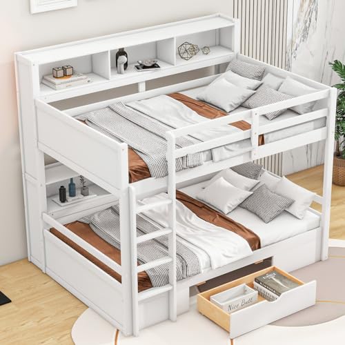 KOMHTOM Lit Superposé Lit d''enfant avec Tiroir et Rangement...