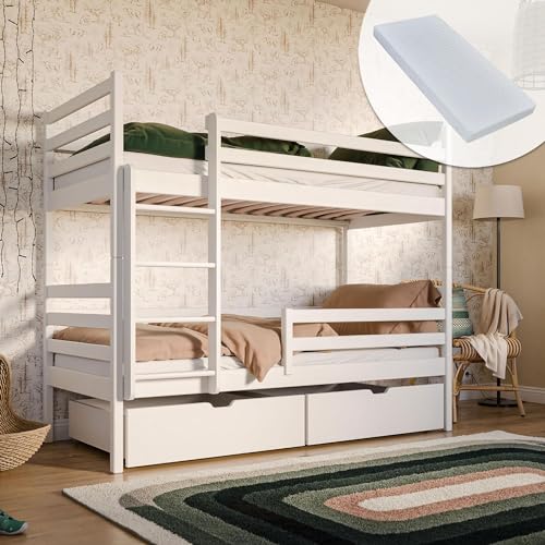 Azkoeesy Lit superposé, 90 x 200 cm, avec tiroirs et espace...