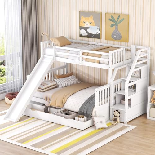 KOMHTOM Lit Superposé Lit en Bois avec Escaliers de Stockage...
