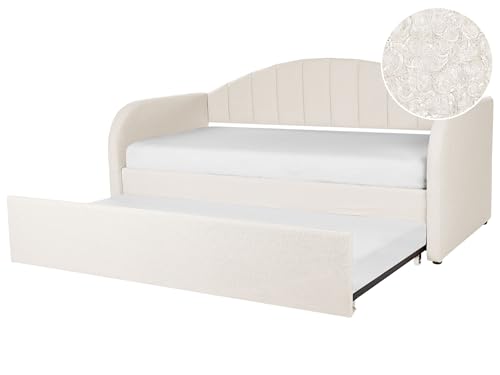 Lit Gigogne Lattes 90x200cm Tissu Bouclé Beige