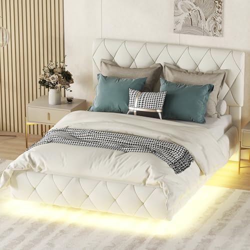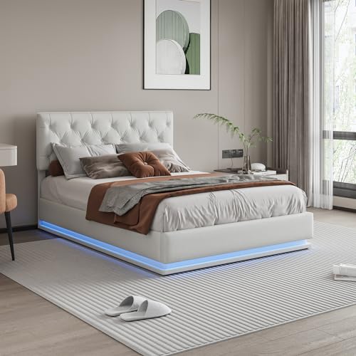 STORYHOME Lit 140x200cm avec éclairage LED, Lit Rembourré av...