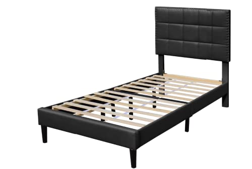 Lit Riley matelas 90x190 Tête de Lit Capitonnee Noir