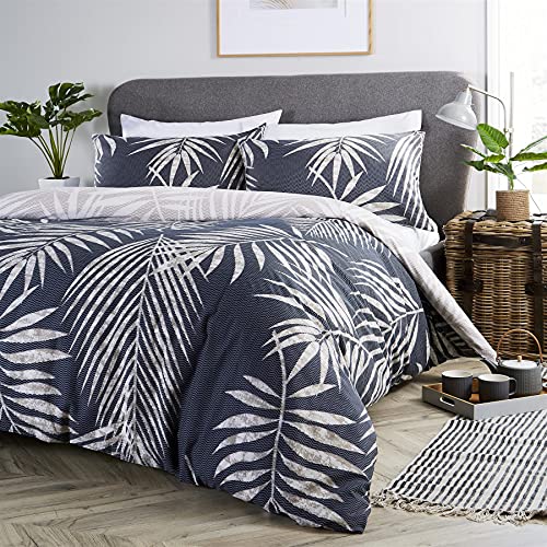 Parure de lit tropical réversible en coton bleu marine, faci...