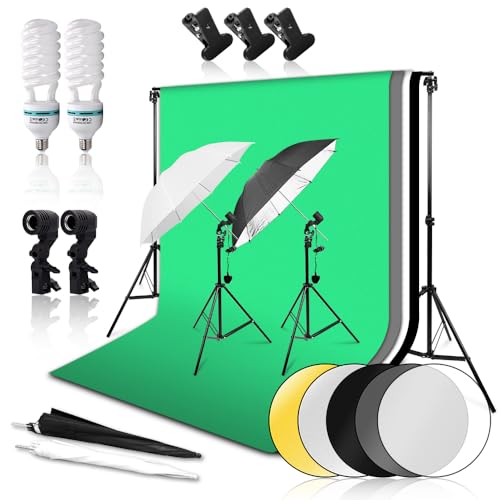 Kit Photo Studio Fond Vert 1,6x3m Reflecteur Lumière Photo 6...