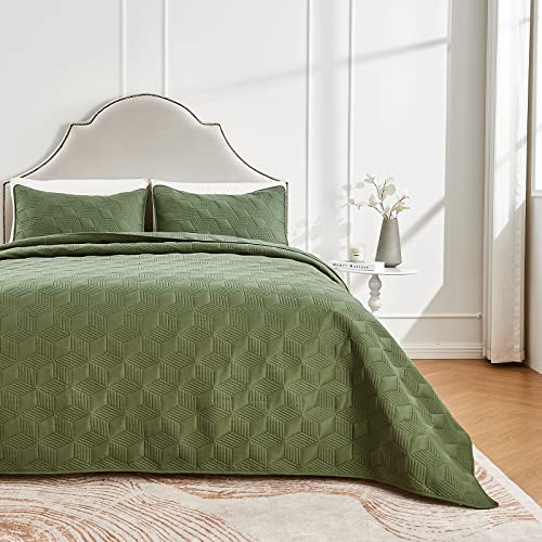 HSOYGE Parure de lit vert scandinave unie, Queen Size, tissu...