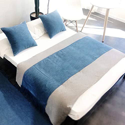 BAMCQ Blue Bed Runner avec Tassel, écharpe Couvre-Lits en Li...