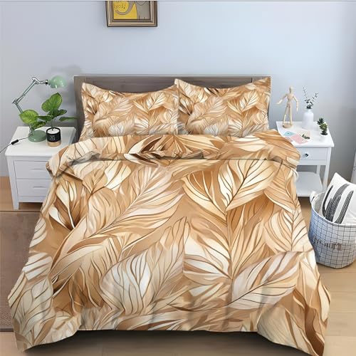 YINGYINGGUAI Housse de Couette 140x200 Feuille, Or Parure de...