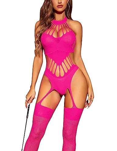 Lingerie sexy rose néon bodystocking sensuelle